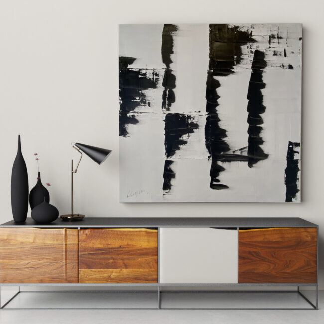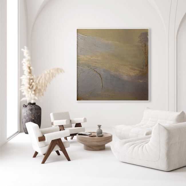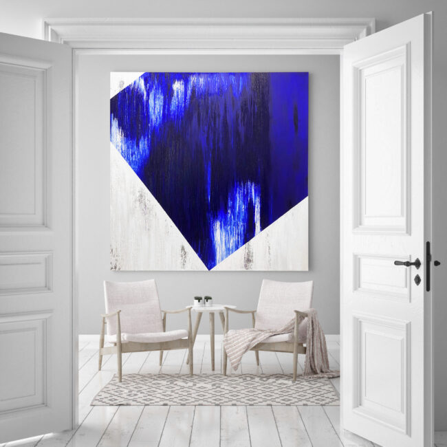 Jede Sekunde ist anders – das Gemälde ALWAYS symbolisiert den Übergang der Verwandlung. Farben treffen auf Formen, Veränderungen werden angestossen. Alles ist im Fluss. Der eine Moment überschreitet den nächsten Moment und die Übergänge sind fliessend. Die Bewegung lässt sich auch auf dem Bild erkennen. Die Darstellung befindet sich im Fluss.